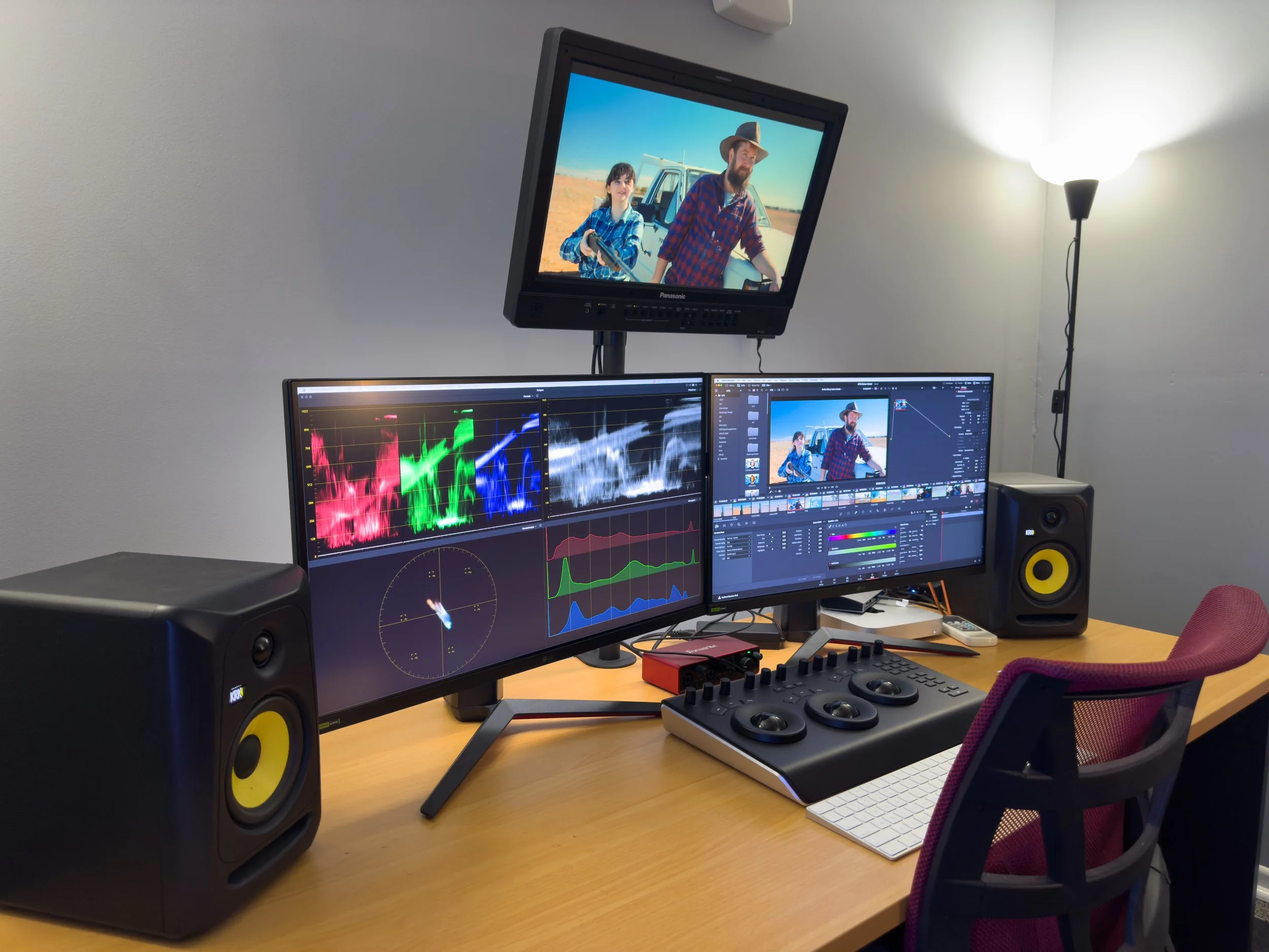 Colour Grading: Broadcast-standard monitors and Blackmagic control panels for stunning, accurate visuals.