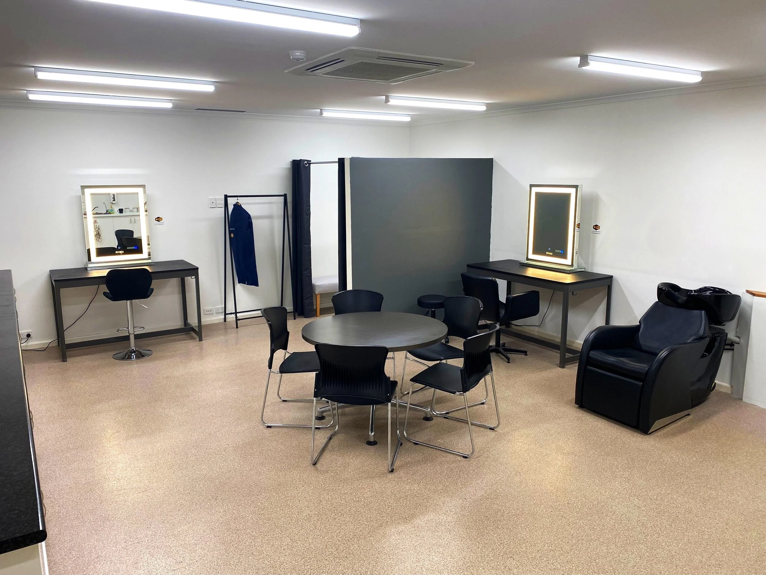 Makeup, change room, hair stations and washing basin all come included with the hire.